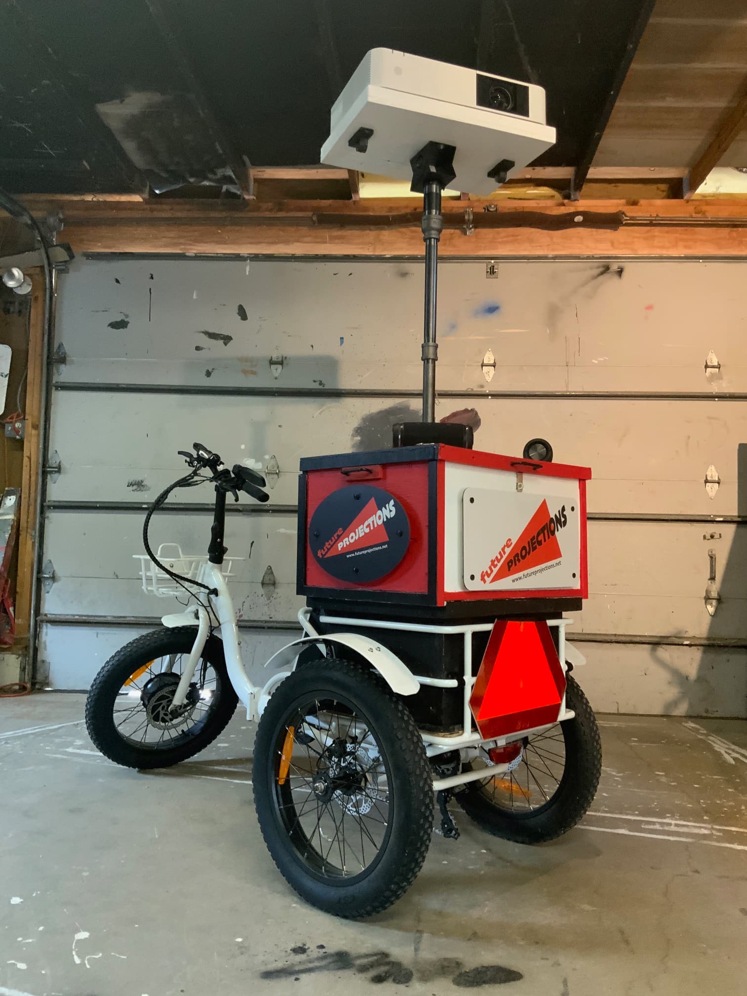 Here is a little video of a recent animation with my projector bike at a move theater in my neighborhood.