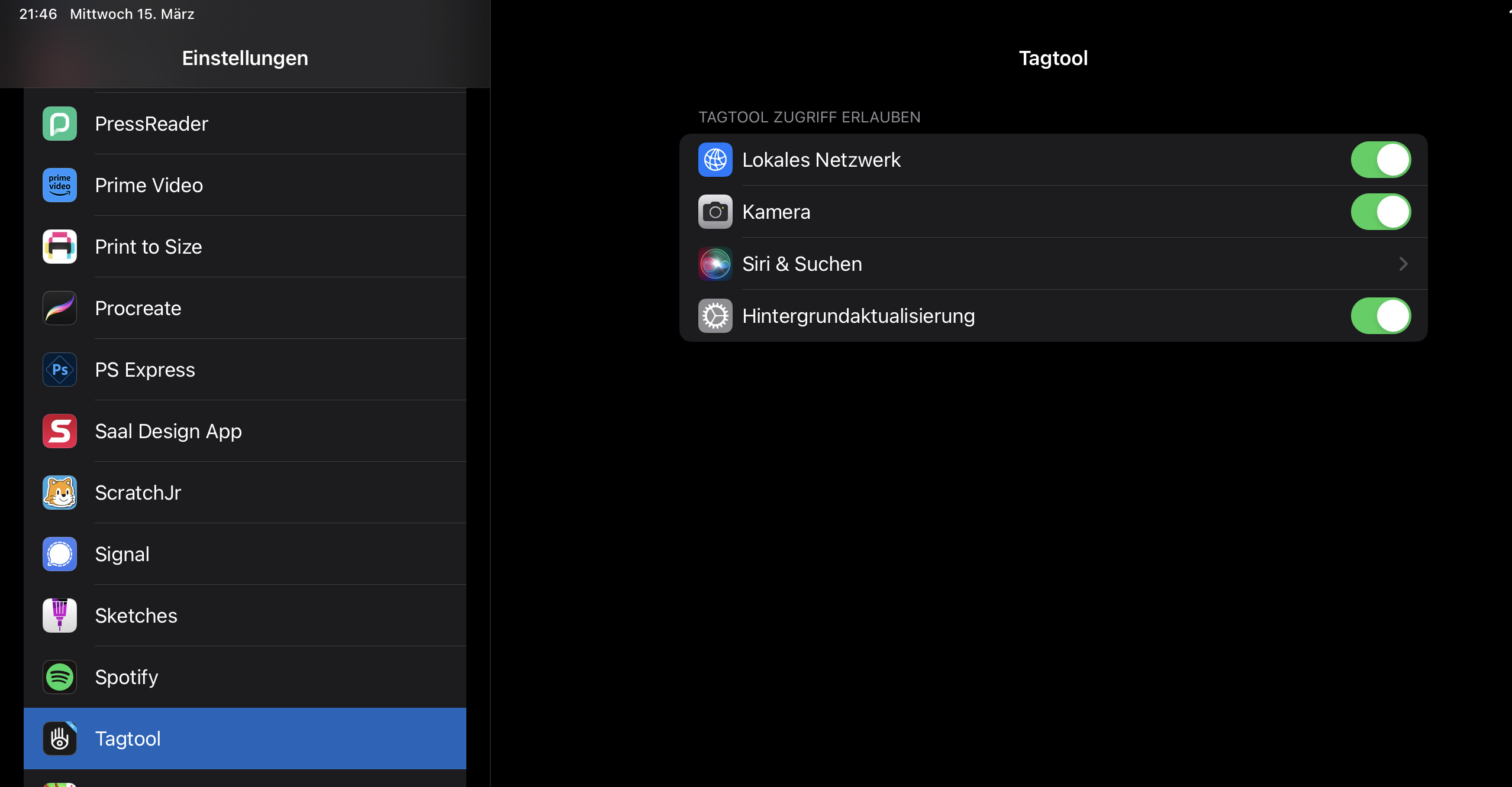 wir hatten das Problem heute auch und konnten es lösen indem wir in dem wir im iOS unter „ Einstellung - TagTool“ den Zugriff auf das lokale Netzwerk erlaubt haben. Kann es sein, dass der Schalter neu ist?