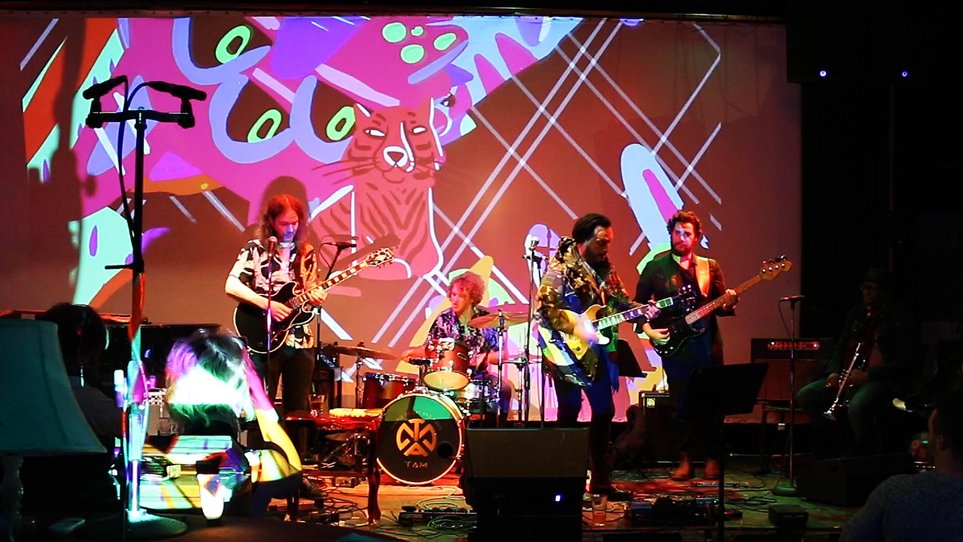 I join the musicians and create live visuals on the fly. Music is a great inspiration for how to set up the scene and pace the animations.