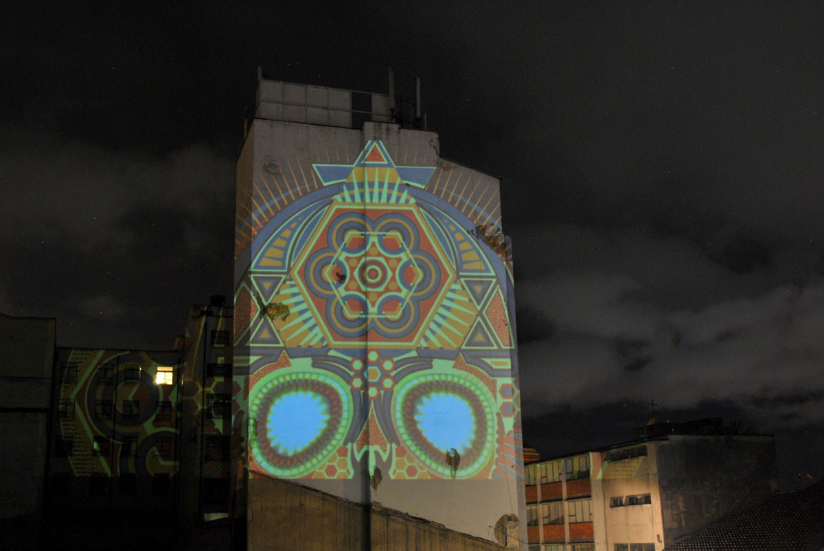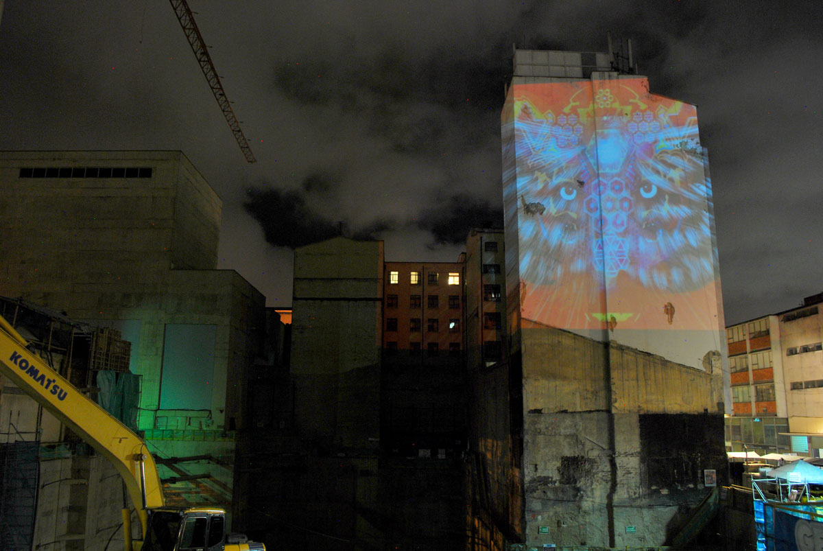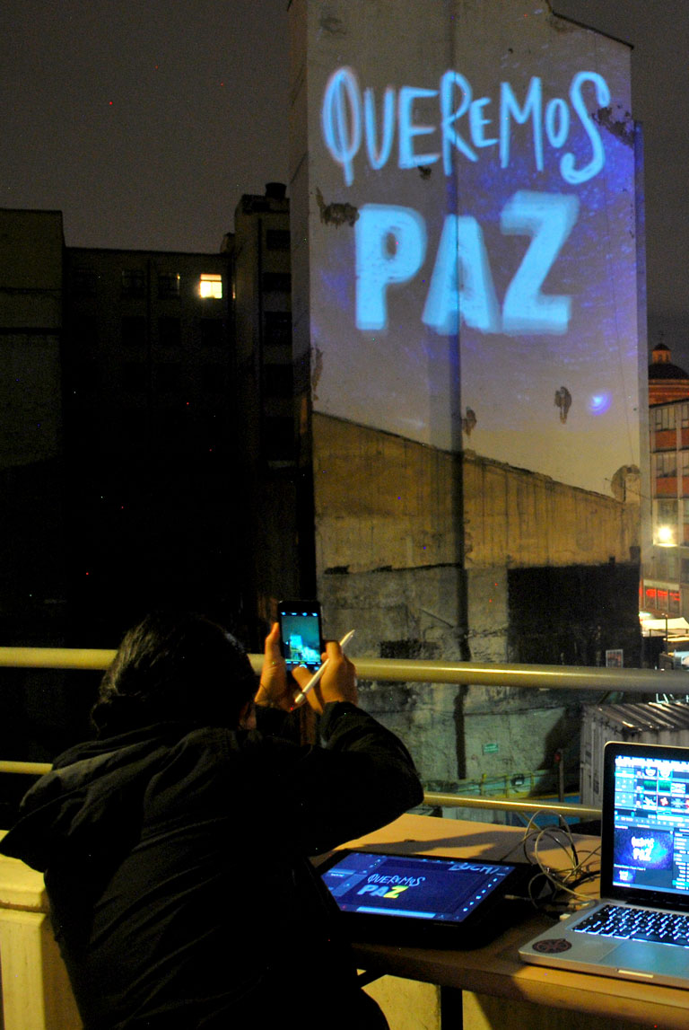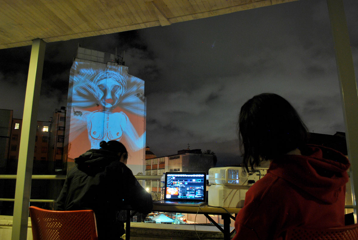 Projecting for the festival ‘Más allá del Pancracio’, at the Gabriel García Márquez Cultural Center in Bogotá.