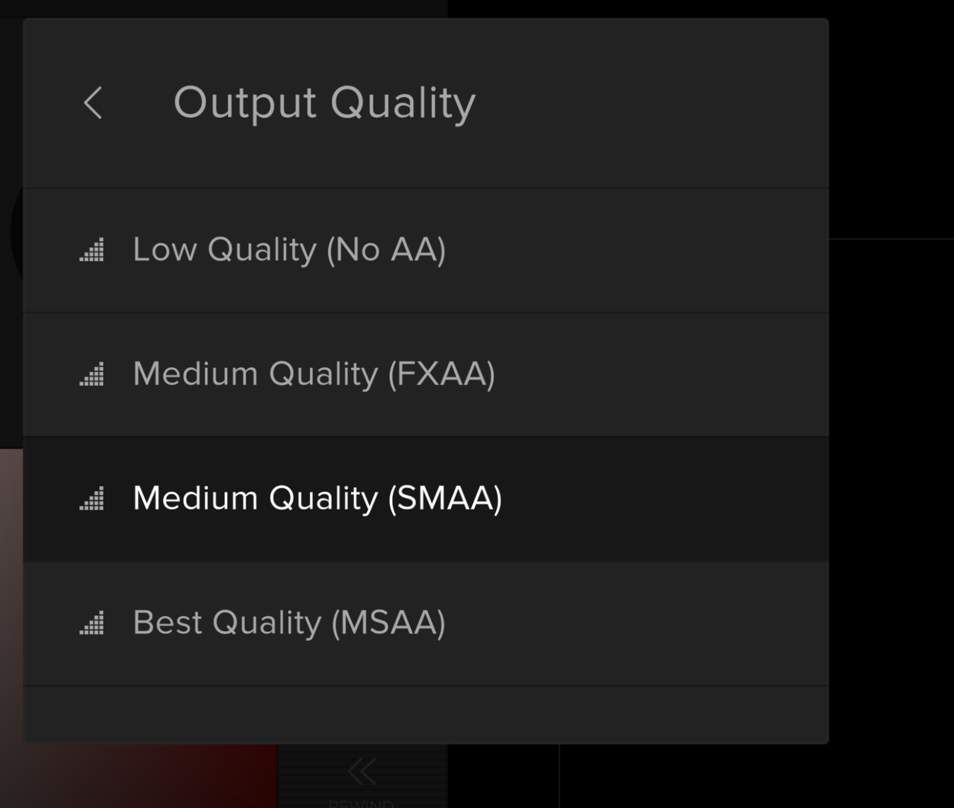 Output Quality - Antialiasing can also help - less quality less work - better performance usually: