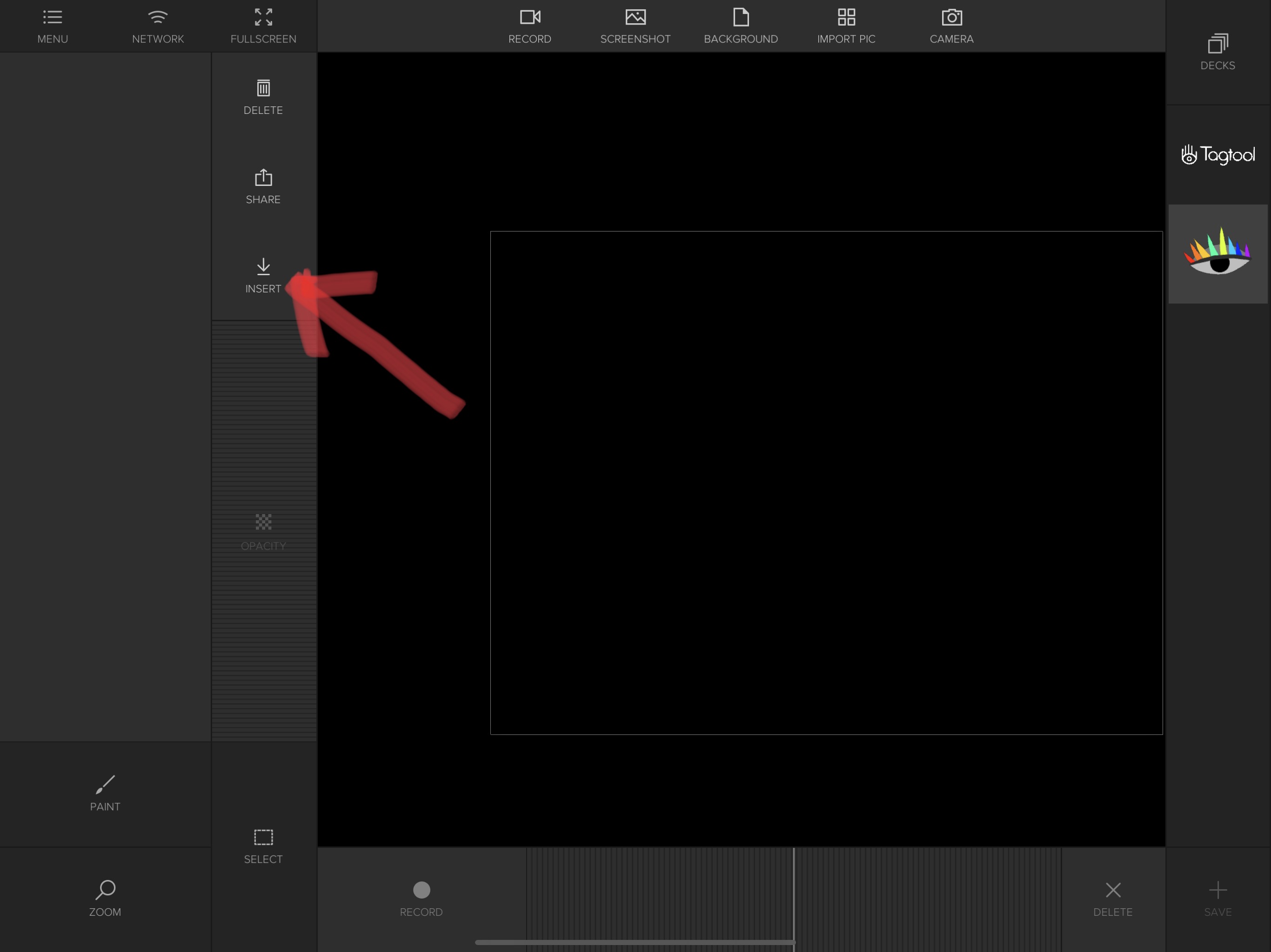 Exactly! You can directly drop a deck item into the workspace - then you need to scale it and use the opacity slider. If you want the exact same position and size of your saved content, then you can use the “Insert” Button.