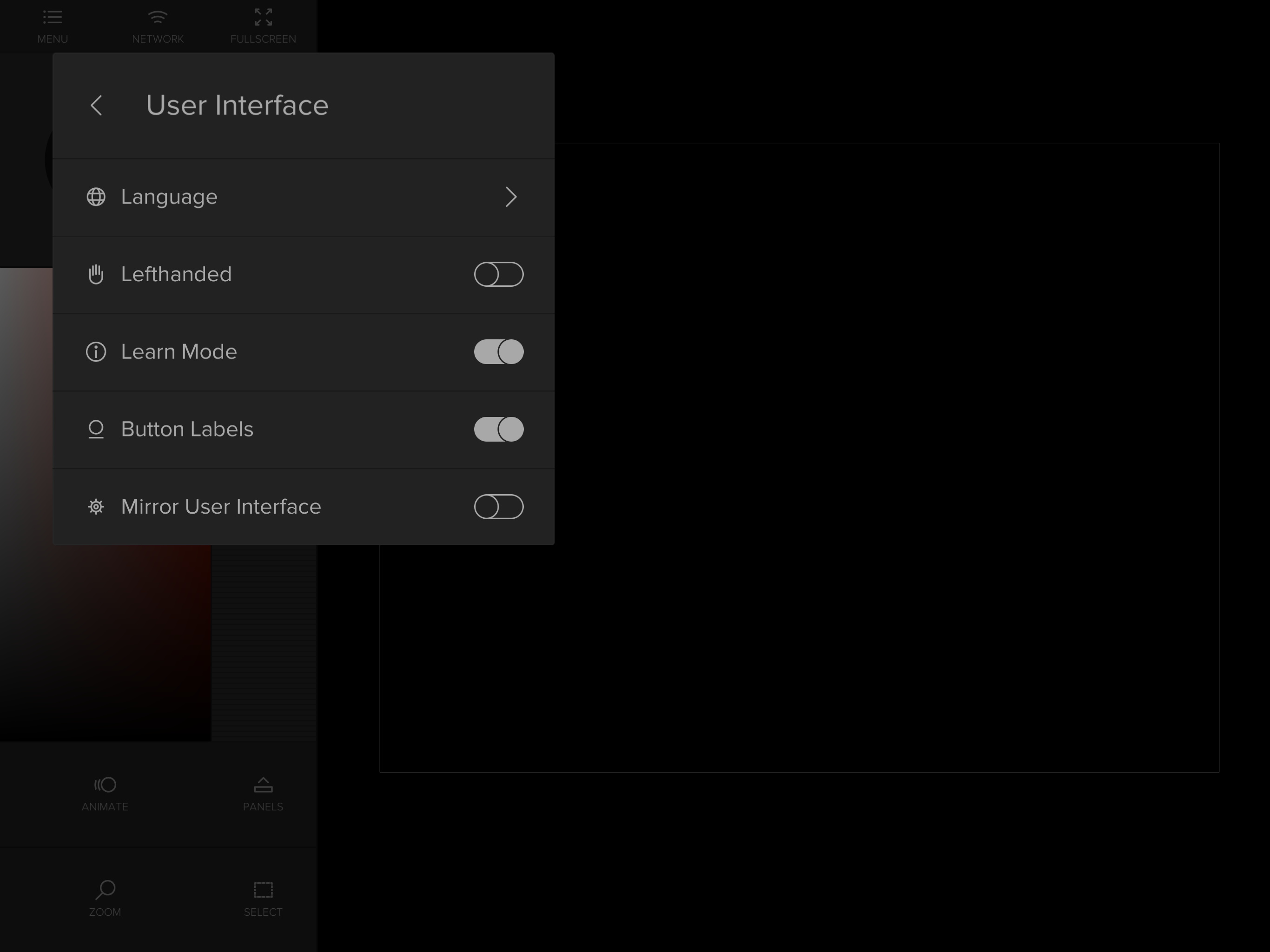 When both options are enabled in Menu/User Interface all buttons and sliders are labeled and