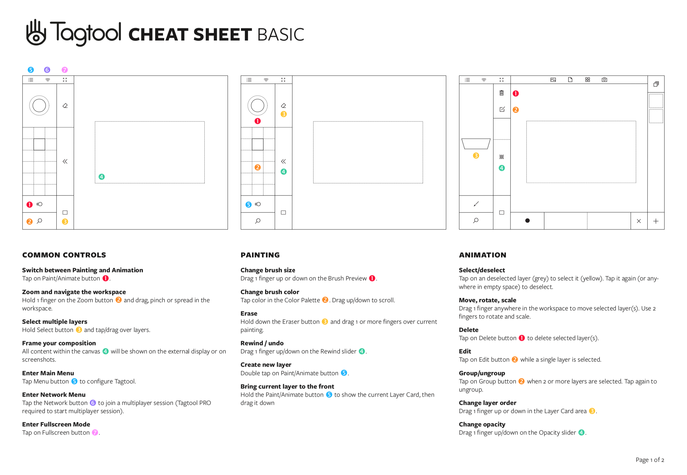 Tagtool Basic Cheat Sheet - A list of all basic funcionalities
